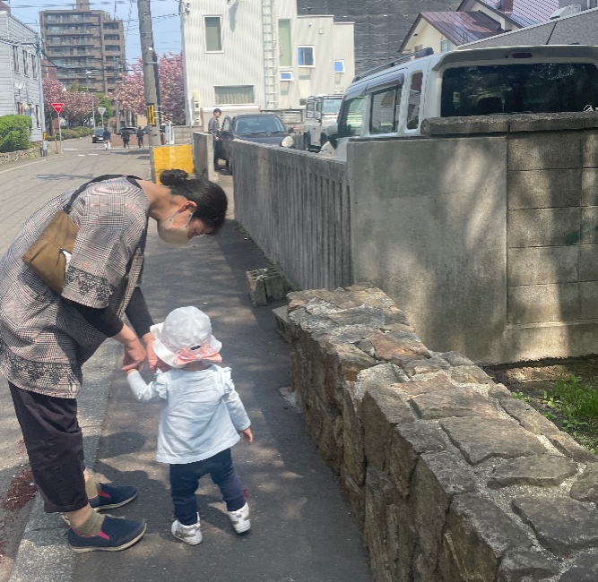 歩けるようになったタイミングから、外出のたびに手をつなぐ経験を重ねることで、安全に歩く習慣が少しずつ身についていきます。