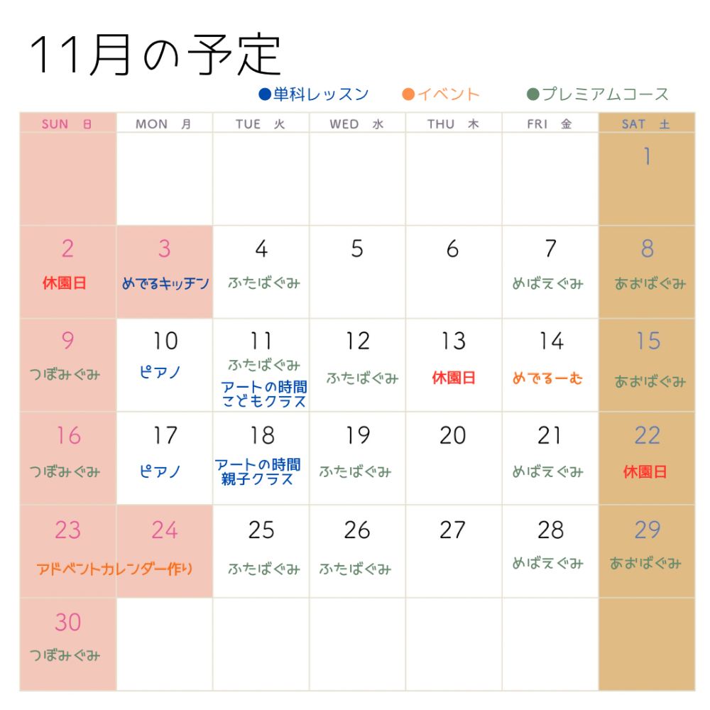 11月はかわいい手型・足型キーホルダー作りのオプションも計画中
