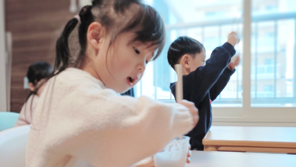 「おいしい」「楽しい」にちょっぴり「不思議」が混ざった新年少さんの科学実験教室。食育にも繋がる、特別なプログラムです。