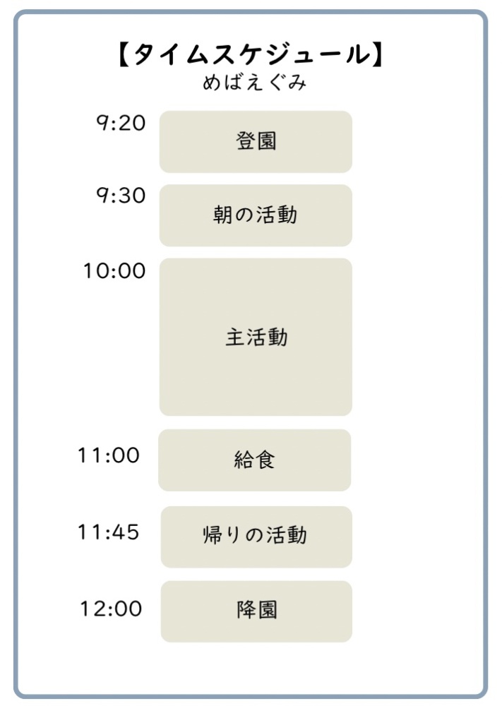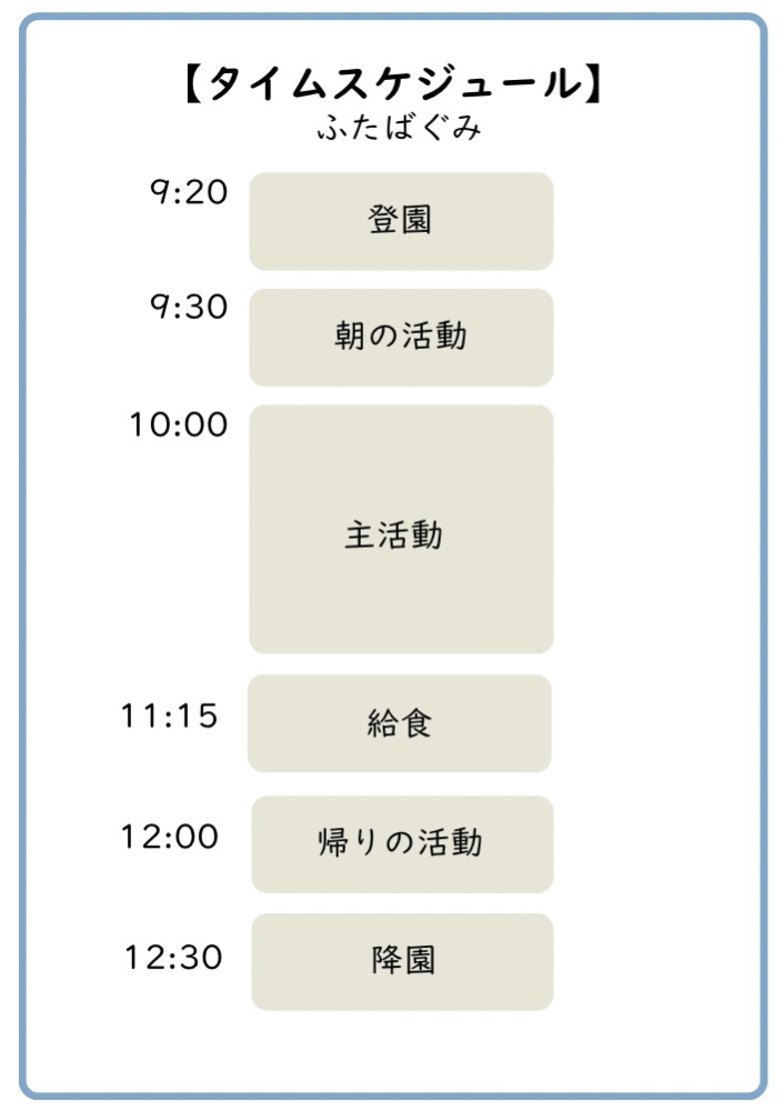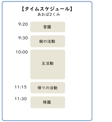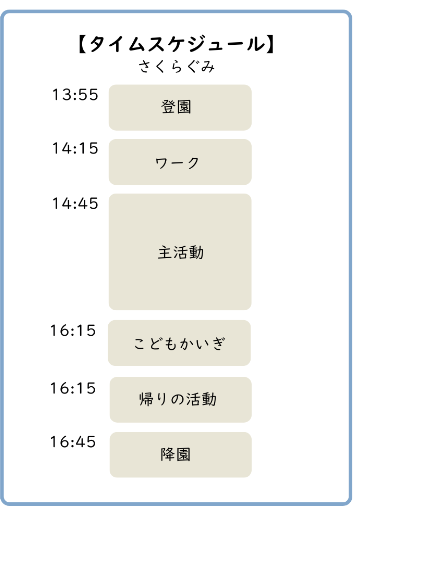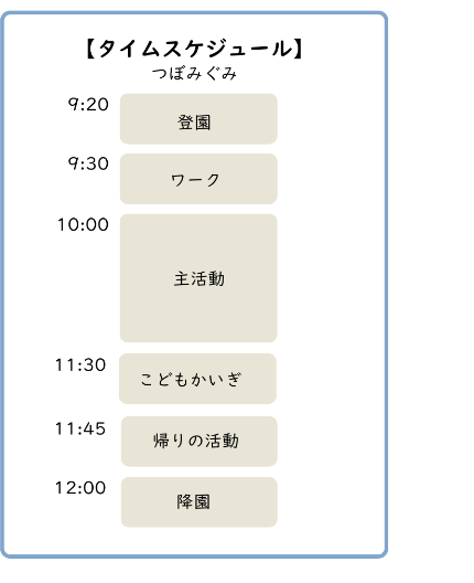 生活の場ではなく「習いごと」としての位置づけのため、 日常的な保育活動は行わず、学びに特化した内容となります。